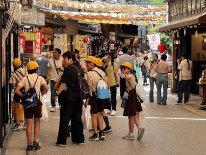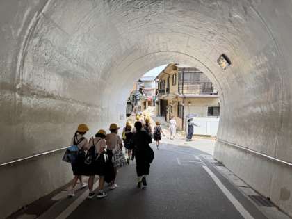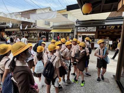 水族館をあとにして、商店街を散策します。みなさんお土産を何にしようか相談しながら歩いています。