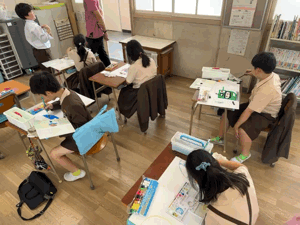 総合の時間でお絵描きをしています。みなさんとても面白い乗り物がいっぱいですね。完成が楽しみです!