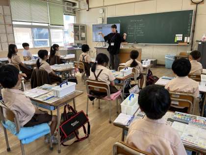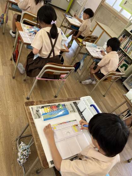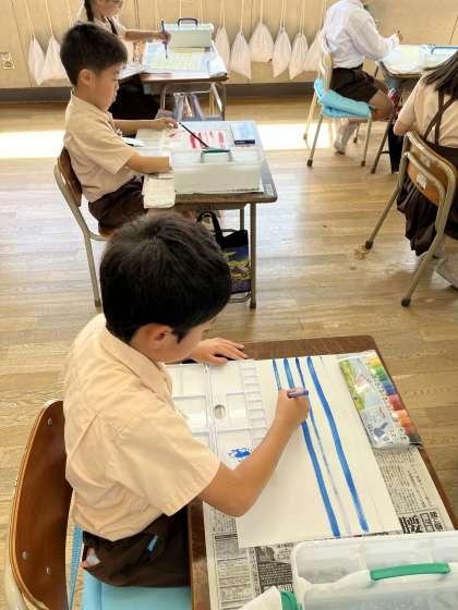 用具の置き方や筆洗の水の量を確認したら、いよいよ描く時間です。