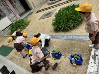 画像(下)1年生 生活 朝顔が育ってきたよ