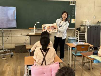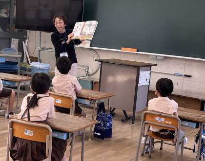 今年度初めての、読書ボランティア「くすくす」さんによる読み聞かせがありました。