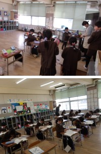 地域の皆さまから「ひだまりパン」を、区役所から「簡易トイレ」をいただきました。パンは味が3種類あるので、ジャンケンでもらう人を決めました!
