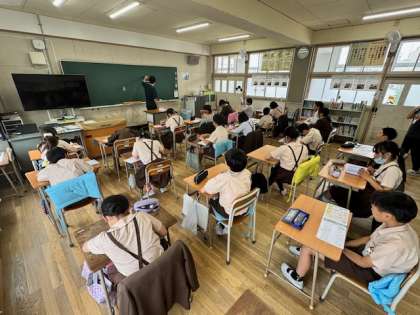 6年生が漢字のテストに備えて静かに勉強しているとなりで、5年生は明日からの自然体験学習で歌う歌をみんなで元気よく練習していました。みなさんの熱気で梅雨の雨雲を吹き飛ばして、このままあと二日間雨が降りませんように!