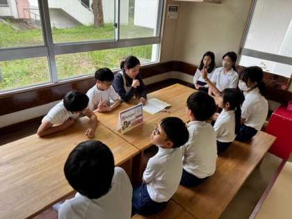 5時半から夕食ですが、その前に配膳などについて係のみなさんが先生と打ち合わせをしています。さっきカレーを食べたばかりのような気がしていますが、みなさん「お腹減った〜!」とのこと。若い!