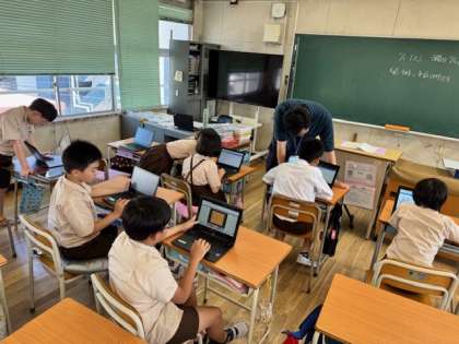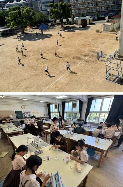運動クラブのみなさんは、グラウンドでキックベースを行いました。5年生の中には、午前中にプールで泳いで、午後は上体そらしをがんばって、そしてキックベールを楽しんでいる人がいるそうです。おうちに帰ったらゆっくり休んでくださいね。科学クラブはスライムづくりに取り組んでいました。ホウ砂を溶かしたお湯の量でスライムの柔らかさが決まります。保存するときは密閉できる容器に入れて、水分が蒸発しないよう気をつけましょう。ダンスクラブは振り付けの続きをみんなで話し合っています。もっと良い内容にするため、先生も一緒になって真剣に考えています。イラストクラブは、プラ板を加熱してキーホルダーを作るため、デザインを考えています。プラ板におさまるよう絵の大きさに気をつけてくださいね。パソコンクラブは前回に万博のポスターを作っていましたが、今回は運動会のポスターを作成してくれています。2枚考えてくれている人もいて、ぜひ印刷して掲示したい素敵なポスターばかりです。今月のクラブ活動も、それぞれとても楽しそうです。いいなぁ!
