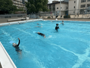 昨日の5,6年生と同じように、みなさん元気に泳いでいます。25mを泳げる人が多くてすごい!