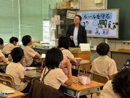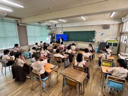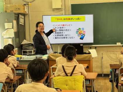 今日の3限は、6年生で非行防止教室を行っています。淀川警察署からお巡りさんにきていただき、「ものを盗むこと」や「SNSのトラブル」といったことについてお話をしていただいています。人が盗んだものをもらっても『盗品等無償譲受け(とうひん とう むしょ う ゆずりうけ)』という罪に問われるそうで、具体的な罪状も説明しながらのお話は、とても説得力があります。