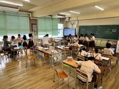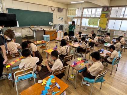 2年生は図工の時間で、こないだ作った七夕のかざりつけをもう少し足してみようとがんばっています。4年生は算数の時間で、小数の引き算の問題を解いて先生に確認してもらっています。どんどん解くので先生やサポーターさんが大忙しです!