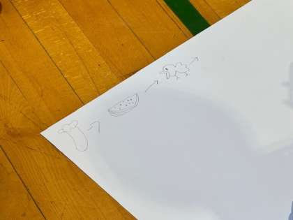 今朝の児童集会では、「おえかきしりとり」を行いました。『なす』につづく言葉を順番に考えて絵を描いていきます。多い班は20個近く続けて書くことができました。すごい!今日も暑いですが、笑顔でがんばりましょう!
