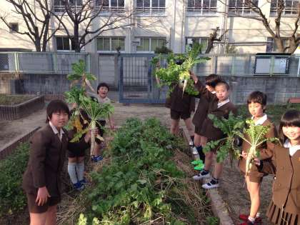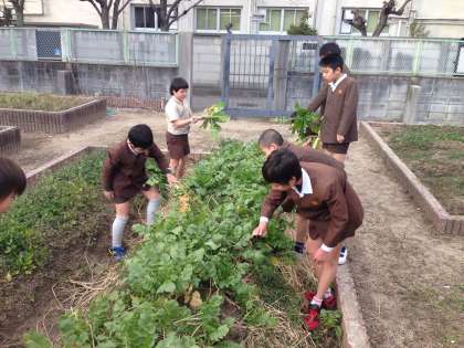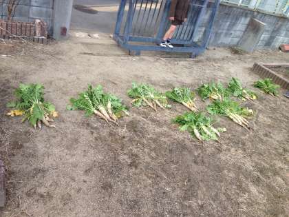栽培委員会で、さつまいもを収穫した後の畑に植えていた大根の収穫をしました。