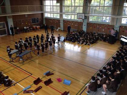 1年生からは、思い出のアルバムの合唱と、子犬のマーチの合奏を贈りました。