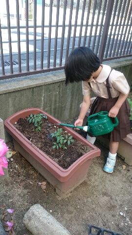 たんぽぽ教室では、教室の裏にあるプランターで野菜を育てます。