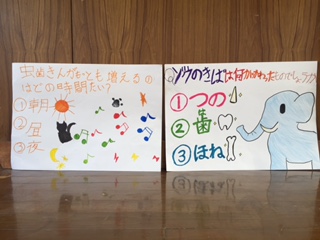 まず、始めに劇でむし歯の予防には「ちょこちょこみがき」が大事なことを全校児童に知らせた後、歯に関するクイズをしました。これからもしっかり、食後の歯みがきを習慣化していきましょう。
