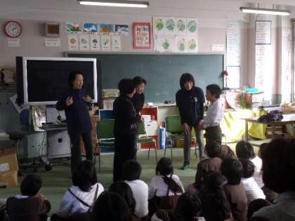 11月28日(木)に、3年生の児童と保護者の方々により、PTA行事の一つである「手話講習会」が実施されました。耳がご不自由であるので、生活の中で工夫されていることや困ることをお聞きしました。知らないことがいっぱいでした。その後、指文字を教えていただいたり口の形で言葉を伝えることを一緒に行っていただきました。