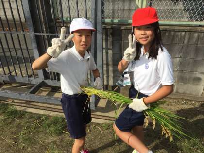 5月に田植えをしてから、世話をしてきた稲を刈りました。
