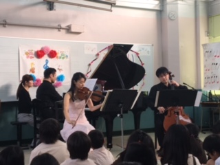 バイオリン、チェロ、ピアノの演奏家に来校していただき、4,5年生が素晴らしい演奏に触れることができました。