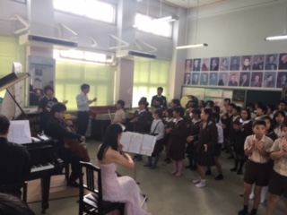 児童数名がバイオリンを実際にふれたり、全員が素晴らしい伴奏で合唱したりと、貴重な体験をすることができました。