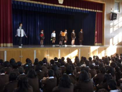 各学年から【3学期にがんばること】を発表し、新年の意気込みが感じられる場面でした。目標にむかってがんばり抜き、幸せいっぱい・元気いっぱいの1年間になってくれることを願っています。