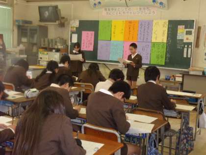 ◎6年は、「伝えよう大切にする名言」で、学校の教職員から聞き取り、意味や使い方 を発表しました。今後は、意味で分類分けするそうです。