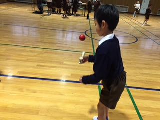 体でリズムをつけながら、すると上手に玉がさらにのりやすいです。連続でできるようにもなりました。