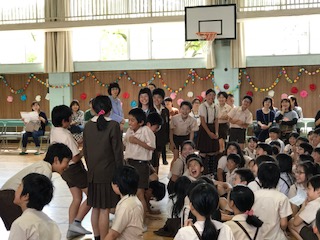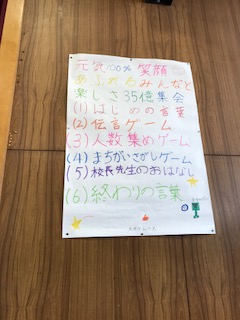 5月10日(水)集会参観がありました。今年度になって2回目の参観は、全体の集会活動と縦割り班での子どもたちの様子を見ていただきました。子ども達も異学年でのゲームなどを楽しみながら、とてもリラックスした表情で、ふれあいの時間をもっていました。保護者のみなさんにも、子ども達の活動の様子をゆっくり見ていただけたのではないかと思います。これから、防災訓練や社明パレードなど地域の皆さんとの活動も続きますが、楽しい時間を共に過ごせたら、と願っています。