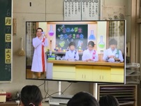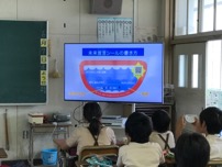 6月7日の2時間目、毎年5年生が参加する日本学校歯科医会主催の「全国歯みがき大会」がありました。参加校が視聴する共通のDVDを見ながら学びます。