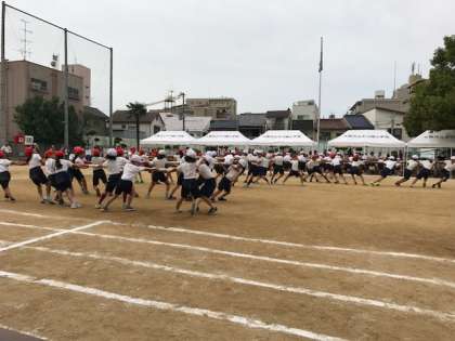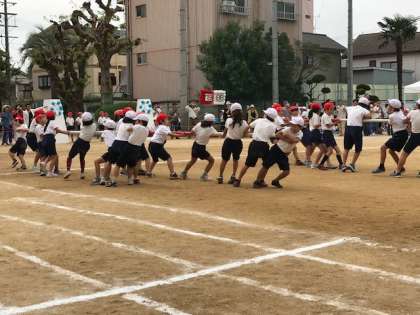 ふれあいつな引きの後は、3.4年の棒引きです。力比べの競技が続きます。