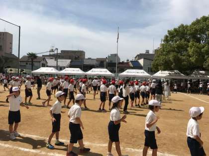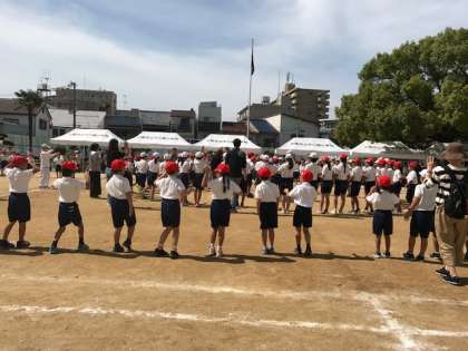 夏休みの盆踊りでも踊ったドンパン節を、保護者、地域の方々と一緒に楽しく踊りました。午前最後の演技が終了しました。