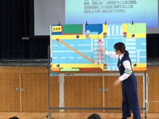 淀川警察署の方と区役所の「セーフティ淀川」の方に講師になっていただき、1,2年生対象に、横断歩道の渡り方や自転車の乗り方について、ご指導いただきました。これからも信号をしっかり守る、曲がり角で飛び出さない等、安全に気をつけてすごすことが大事ですね。