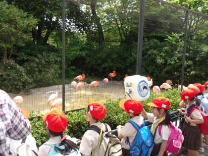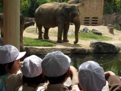午前中は、天王寺動物園の人混みもわずかでしたが、昼近くになりたくさんの小学生や幼稚園・保育園の園児でいっぱいになりました。数多くの動物に歓声をあげながら見学しました。暑さのせいで動物たちも木陰や屋根の下で、休憩しており、少し見にくく残念な面もありました。