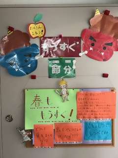 2月となりました。寒い日は、読書で心温まるように、学校図書館で、たくさんの本が待っています。入口では、節分の掲示も、子ども達を図書館へと招いてくれています。