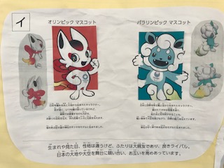 東京2020オリンピックのキャラクター小学校応募について、木川南小学校でも、児童の意見をきいて参加しています。ア・イ・ウ3種類の中から、個々の児童が選んでいます。さて、どのキャラクターが最終決定されるでしょうか。楽しみですね。