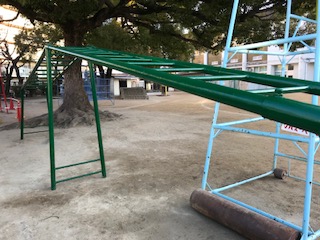 運動場の遊具が、真っ新のようにピカピカになりました。子ども達のために、2月に入ってからの厳寒の中、ペンキ塗りを進めていたのは管理作業員さんです。ペンキがしっかり乾くことを、子ども達も楽しみにしています。