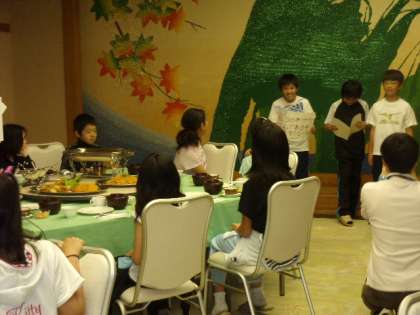 フェリーで宮島へ渡り、宿舎での夕食。出発時間が早かったので、お腹がすきました。