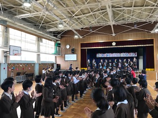 早いもので、来週の19日(月)は卒業式です。5・6年生は力を合わせ、練習しています。今日は、リハーサルで本番さながらに進行しました。卒業生として、小学校生活