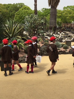 まずは、咲くやこの花館の中を縦割り班で回って、クイズラリーに挑戦。難問に悪戦苦闘しながらも協力してチャレンジすることができました。