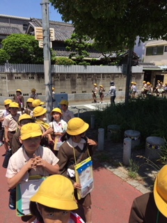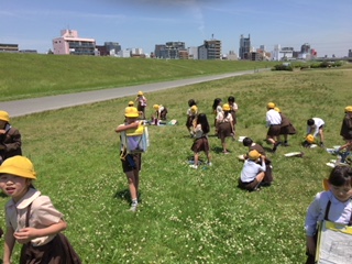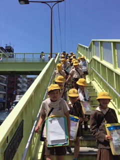 バス停を見て、何があるのか、どんな仕組みになっているのか。はたまた、町並みはどんな様子なのか。お寺には、どんなものが置いてあるのか等々。正通院に不動明王さんがまつられているということを知っている子もいて、驚きました。最後は、河川敷で走り回って大喜びでした。地面がぬれていたため、こけてしまって衣服がどろどろになってしまった子もいました。お洗濯、ご迷惑をおかけしてすみません。