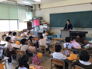 教材を使う以外に、先生自身の体験を聞く学習もありました。一年生も、真剣に先生の経験に耳を傾けて学習、質問までしていました。