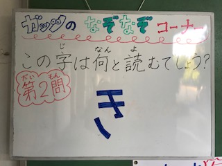 校長先生コーナーのなぞなぞ第2問目です!子ども達が、休み時間にたくさん集まり、ワイワイ、楽しみながら答えを考え、校長室をノックします。子ども達にとって、校長室が身近になりました。さてさて、答えは?もうすぐヒントがでそうですよ。
