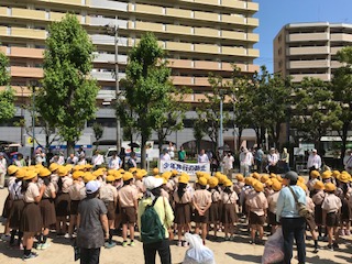 今から木川の町を明るくするために合奏、呼びかけをしながら歩いていきます。