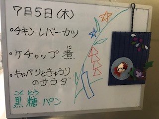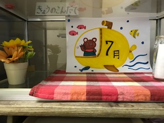 可愛く涼しげな海中のクマさんや和風金魚やアサガオが、毎日の給食タイムを飾ってくれてます。