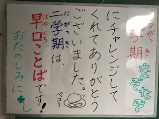2学期は、早口言葉になるそうですよ!これまた、楽しみですね。どんな問題がでるのでしょうか!乞うご期待。