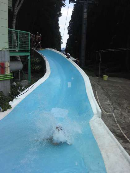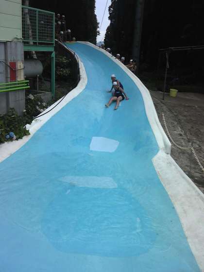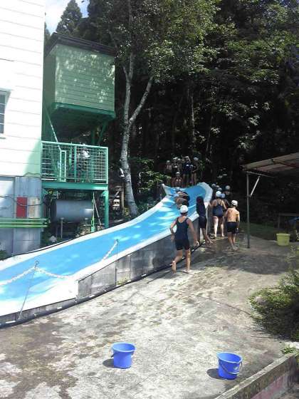 あまごが焼けるのをスライダーを滑って待ちます。楽しい!