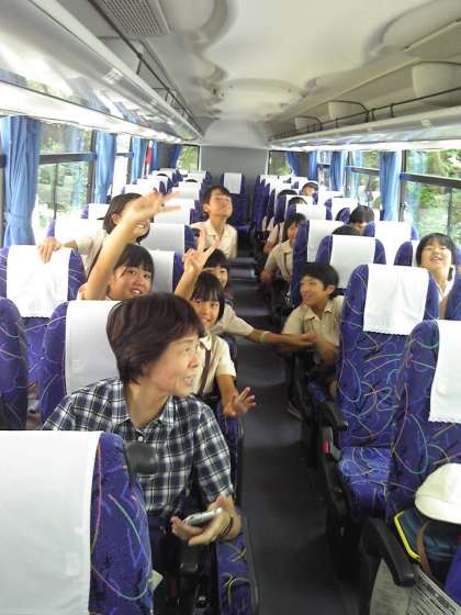 林間学習を終え、バスが出発しました