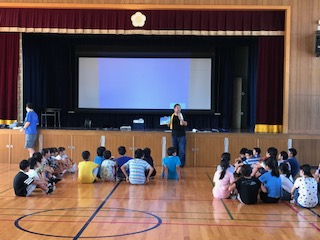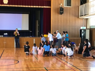 開会式が終わり、ゲームタイムです。災害対策を学びながら、クイズに答えるゲームです。学べる内容を考えてくださっています。子ども会、PTAのみなさん、いろいろなお世話とご配慮、ありがとうございます。