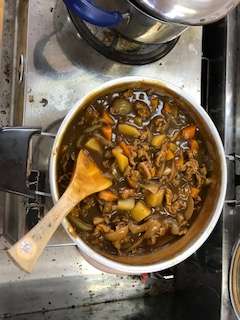 愛情たっぷりのカレーができあがりました!すごく美味しそうですね。香りが紹介できず残念です。よい香りですよ。