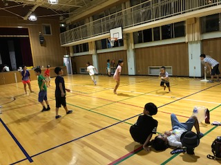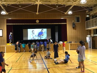 きもだめしで大騒ぎした子どもたち、まだまだ元気に講堂を走り回っています。そろそろ、みなさん解散の時を迎えます。今宵は、ゆっくり眠れますように。