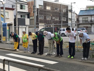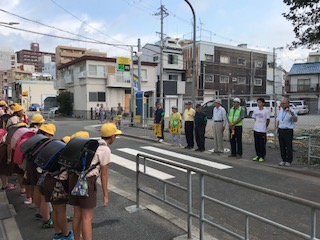 木川南小学校では、毎朝地域の見守り隊の方が、子ども達の安全を守ってくださっています。台風の翌日も安心して、無事に登校できました。ありがとうございます。挨拶は子ども達にとっても、よい習慣です。