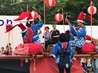 舞台の前で、紹介タイムです。ちょうど正面で、素晴らしいお手打ちも披露。礼儀正しい姿が、凛とした雰囲気をかもし出しました。