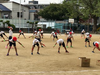 運動会が近くなり、だんだん、気持ちも熱くなっています。よく覚えているラジオ体操第一も、しっかり細かく練習しています。